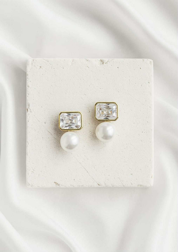 Shop these stunning earrings made with cubic zirconia stones and freshwater pearls
