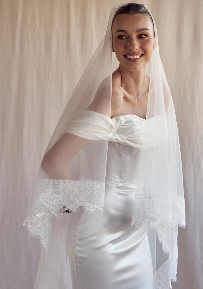 STEVIE IVORY MANTILLA LACE WEDDING VEIL